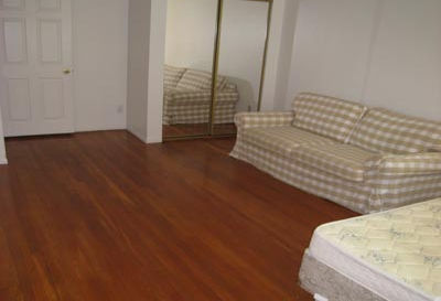 2 Bedroom, 1 Bathroom, 2 Large Bedrooms of equal size, small common area. Full Kitchen. Private Patio. Hardwood Floors.